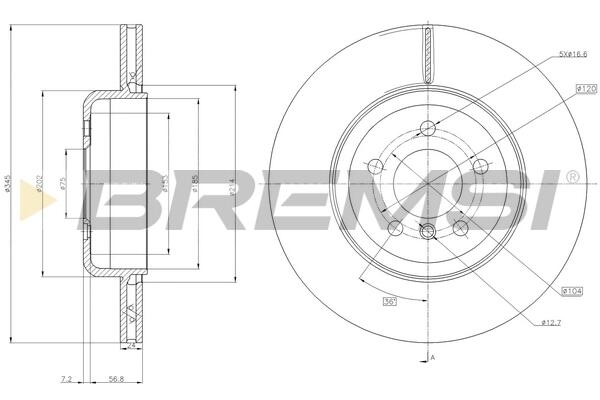 Гальмівний диск зад. BMW 5 (F10/F07)/6 (F06/F12/F13)/7 (F01/F02/F03/F04) 3.0-4.4 08-18 (345x24mm)