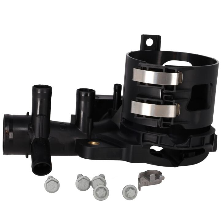 Фланець системи охолодження з кожухом кріплення паливного фільтра
