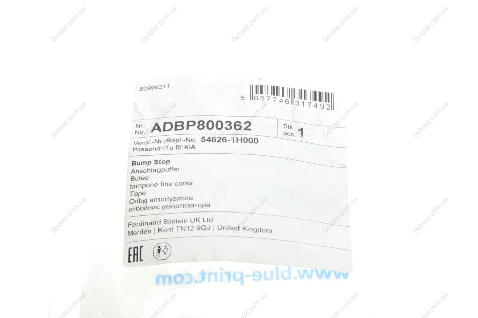 - BLUE PRINT ADBP800362 підходить до марок/моделей авто: