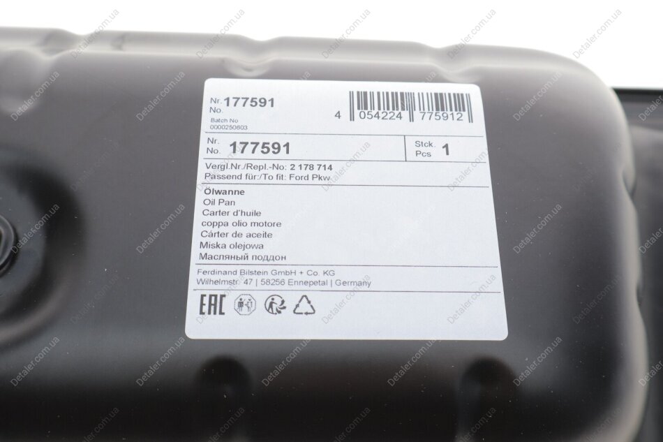 Додатковий артикул / додаткова інформація 2: без прокладки масляного картера