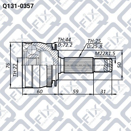 Внутрішнє зубчасте з'єднання з боку колеса: 22